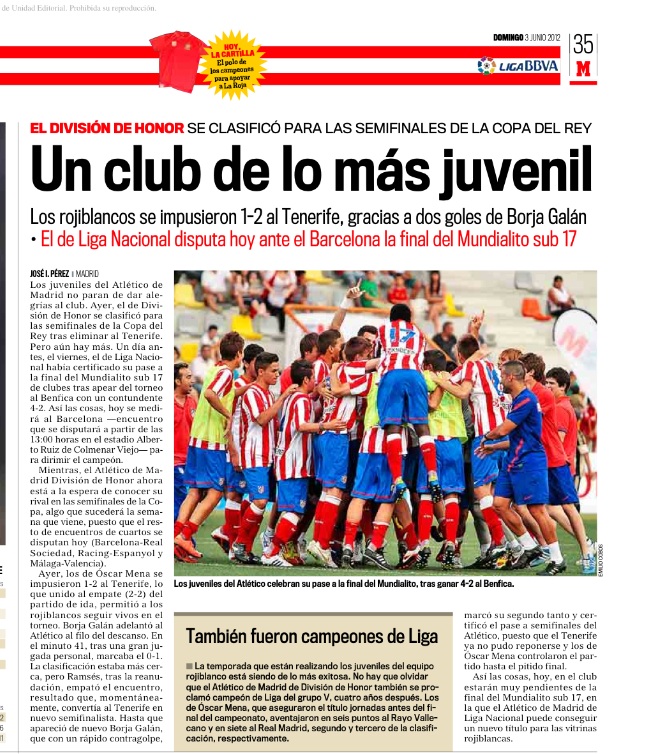 El Equipo juvenil Liga nacional del Atl. De Madrid consiguió proclamarse campeón del VIII Mundialito de Clubes.